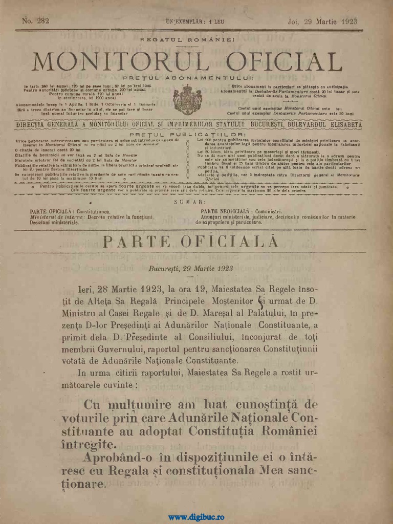 Descarcă referatul cu titlul constitutia romaniei din 1923 cu plata prin sms pentru 4 € + tva. Constitutia romaniei, in forma initială, a fost adoptată in sedinta adunării constituante din 21 noiembrie 1991, a fost publicată in monitorul oficial al romaniei, partea i, nr. Astfel, romanii fara deosebire de origina etnica, de limba sau de religie, se bucura de libertatea constiintei, de libertatea invatamantului, de libertatea presei, de libertatea intrunirilor, de.