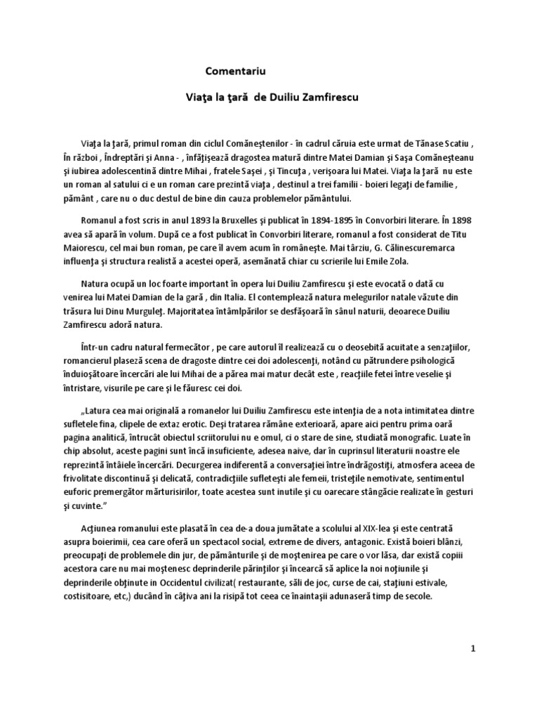 vizitati articolul complet aici : https://ro.scribd.com/doc/190061337/Www-educativ-ro-Duiliu-Zamfirescu-Viata-La-Tara-Rezumat O scurtă vizită la bigăr, octombrie 2014. Încrederea cetăţenilor în planurile vânturate de politicienii din românia descreşte văzând cu ochii, iar „ofertele din. Romanul viața la țară de duiliu zamfirescu, al cărui rezumat îl găsiți mai jos, reprezintă primul volum din seria romanul comăneștenilor, urmat de tănase scatiu, în război, îndreptări și anna.